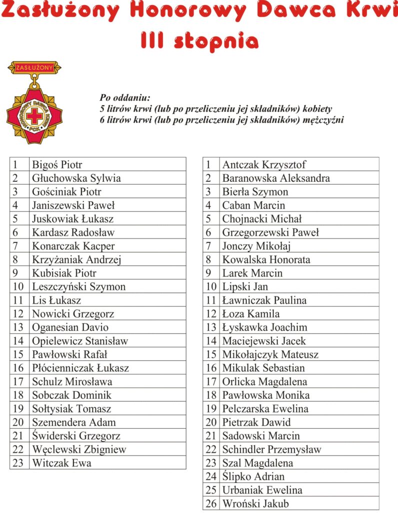 Zasłużony Honorowy Dawcy Krwi III stopnia